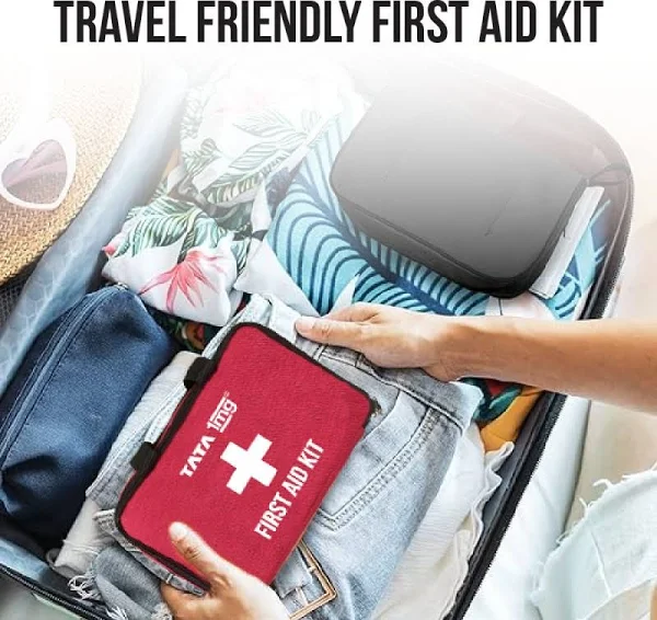 Information about Tata 1mg First Aid Kit Tata 1mg First Aid Kit contains different medical supplies, which can provide primary care during any injuries or accidents before proper medical care is available. Product Details: The box contains items like Medicated first aid dressing, Digital Thermometer, Antiseptic Solution, Cotton Roll, Micropore Tape, Crepe Bandage, Gauze Bandage, Roller Bandage, Pain Relief Gel, Scissors Cipladine Cream, Absorbent Cotton Wool, Paracetamol Tablet Uses: The kit box can be used to manage injuries, stop bleeding, minimize sprains, and other minor conditions Product Specifications and Features: Light-weight design and easily portable It is made of polyester fabric and is waterproof It has a separate mesh pouch Directions for use: Use as and when required Safety Information: Read the label carefully before use Store in a cool and dry place Keep out of reach of children