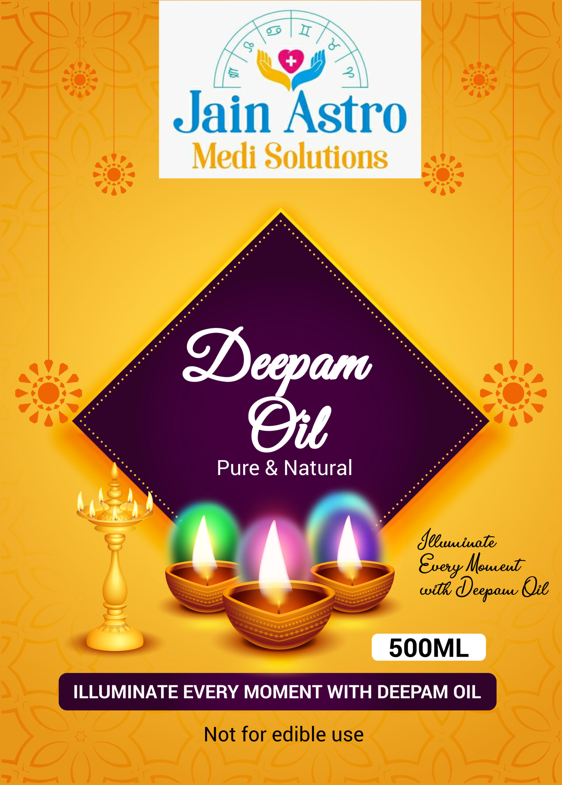 Benefits Religious and cultural practices – oil lamps are often used in religious & cultural ceremonies. Festivals and celebrations many festivals involve the use of oil lamps Meditation and yoga in some spiritual practices, oil lamps are used during meditation or yoga sessions to create a serene and focused atmosphere. Jain Astro Medi Solutions Deepam Ou Pure & Natural ILLUMINATE EVERY MOMENT WITH DEEPAM OIL Not for edible use Ceremonial offerings – oil lamps may be used as part of ceremonial offerings or rituals, symbolizing purity and devotion.