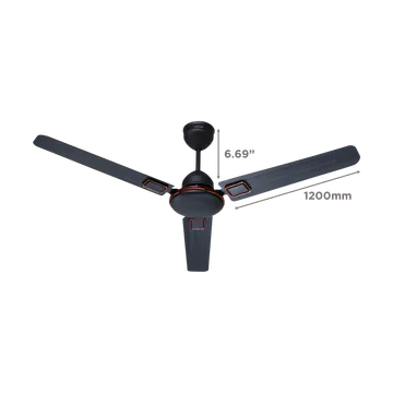 Key Features Sweep Size: 1200mm Power Consumption: 30 Watt, 5 Star Rating Speed Settings: 6 RPM: 360 Air Flow Volume: 12900 m3/hr BLDC Motor, Rust Proof, Aerodynamically Design 2 Years Product Warranty