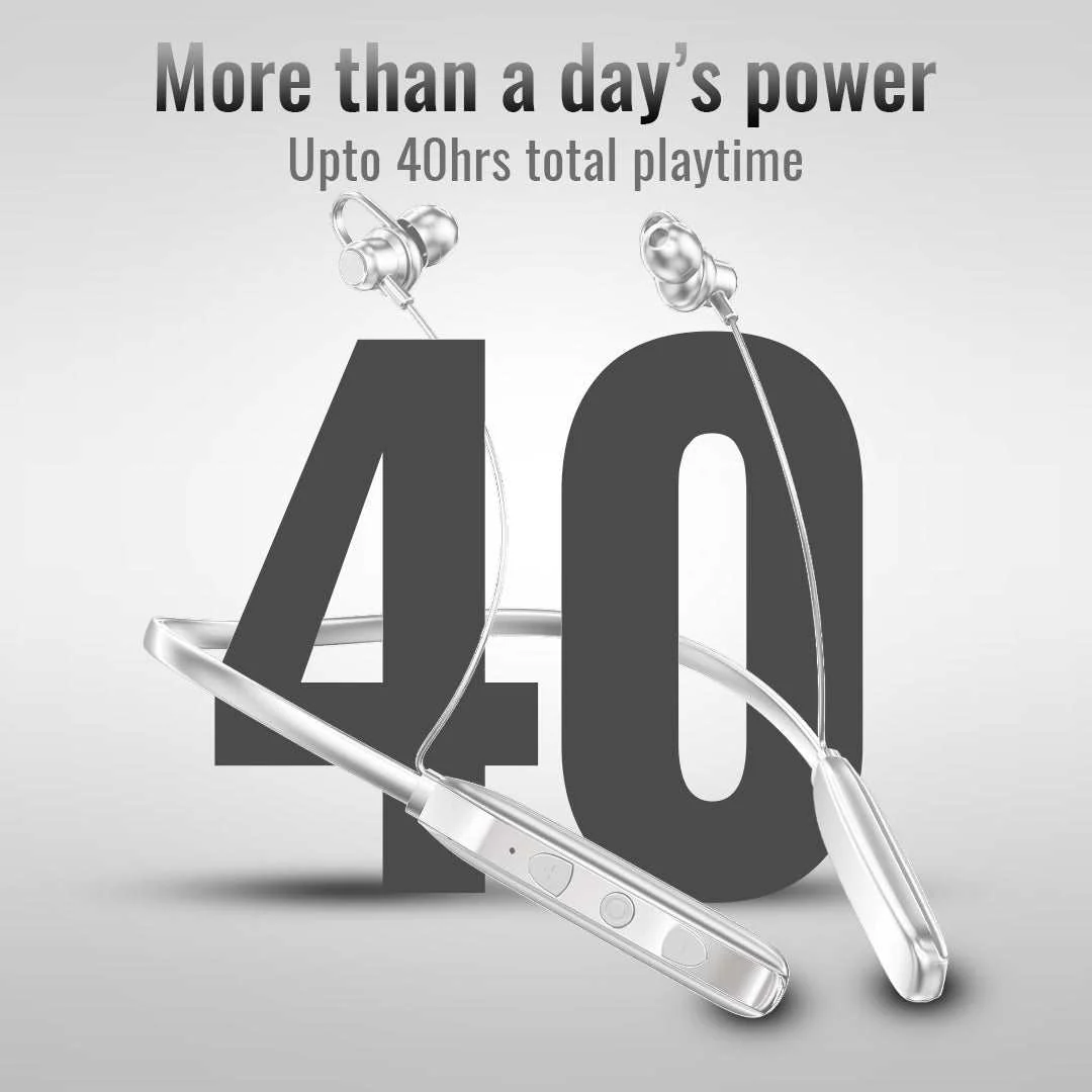 Battery Life: 40 hours of playback. Bluetooth 5.0: Stable connection with a range of up to 12 meters. IPX Water Resistance: Protected against splashes and rain. Vibration Alerts: Notifies you of calls and notifications via vibration. Magnetic Earbuds: Tangle-free, easy storage. Built-in Microphone: Clear, noise-free calls. USP: Long Battery Life: 40 hours of continuous playback. High Bass Sound: 10mm dynamic drivers for deep bass and clear sound. Comfortable & Lightweight: Ergonomic design for long-lasting comfort. Water Resistance: IPX-rated for workouts and outdoor use.