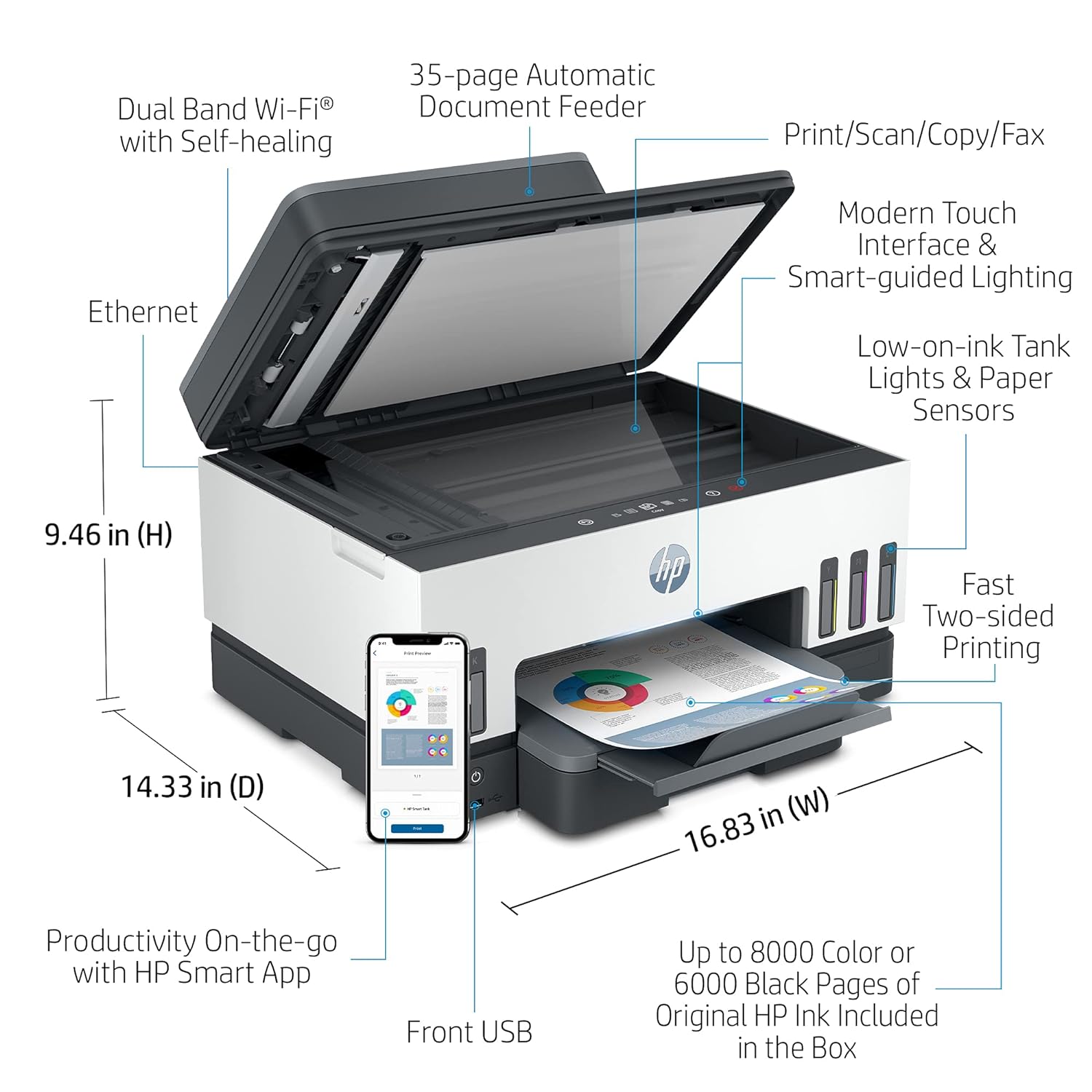 【All-in-One printer】Streamline your workflow with this all-in-one - print, copy, scan, fax HP Smart Tank printer that elevates your projects with vivid color prints and dependable flatbed scanning.