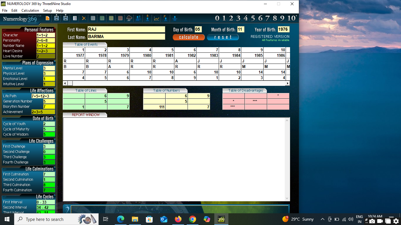 Numerology369 is professional numerology software for PC that is fully functional no matter if Internet connection is present or not. There are two ways to generate Numerology369 charts: online, through our web site with online numerology calculator and offline, with our professional numerology software. It is shareware software: it is free to download, test and distribute but some features are available only for registered users. For more info about registration please visit our user registration page. Windows all Version Supported Software.