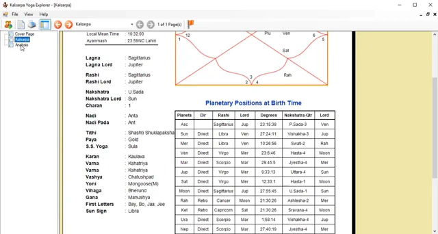 Features : Based on Kalsarp Yoga Based Report Generation Languages : English + Hindi